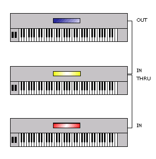 -> MIDI e sequencer -> Il protocollo MIDI Tutti quelli che si accingono anche solo per curiosità a fare musica con un qualsiasi strumento elettronico, sia esso una tastiera o un software dedicato, si sono imbattuti prima o poi nel MIDI. In questo tutorial cercheremo innanzitutto di chiarire che cos'è il MIDI, quali sono gli scopi per i quali è stato creato, e come funziona nella generalità dei casi. Per informazioni più dettagliate rinviamo ad un prossimo tutorial. Il MIDI è un linguaggio standard di comunicazione digitale utilizzato per scambiare informazioni tra strumenti musicali. L'acronimo M.I.D.I. sta per Musical Instrument Digital Interface, ossia Interfaccia Digitale per Strumenti Musicali. L'elenco di istruzioni MIDI viene detto protocollo MIDI ed è stato introdotto ufficialmente nel 1983 da un consorzio di produttori con l'intento di permettere a macchine - anche se prodotte da diverse marche - di comunicare tra loro. Per essere in grado di comunicare mediante il protocollo MIDI, un dispositivo deve essere dotato di un hardware specifico, detto interfaccia MIDI, che fornisce le connessioni necessarie. Vedremo più avanti quali sono queste connessioni e come funzionano. Una cosa che è necessario comprendere subito è che il protocollo MIDI non contiene informazioni audio: è importante infatti distinguere immediatamente il MIDI dai formati audio (WAV, PCM, IFF, tanto per citarne qualcuno), evitando la confusione che a volte si genera quando si incontra il formato .mid che è associato ai file che contengono informazioni MIDI. Per capire invece che cosa il MIDI effettivamente è, immaginiamo una ipotetica situazione in cui abbiamo a disposizione due tastiere - poniamo ad esempio due sintetizzatori - che dispongano entrambi di interfaccia MIDI, e che noi vogliamo sfruttare questa possibilità. Colleghiamo allora queste due tastiere: per semplicità, limitiamoci a dire che ad una uscita (MIDI OUT) della prima tastiera, collegheremo un ingresso (MIDI IN) della seconda. Bisogna tenere degli accorgimenti nell'effettuare questo collegamento, ma noi per ora supponiamo che basti inserire il cavo per rendere attivo il collegamento e per trasmettere le informazioni. Ora, accese entrambe le tastiere, teniamo il volume aperto sulla prima tastiera, che è quella che invierà le istruzioni MIDI, in quanto collegata tramite un OUT (si dirà quindi che la prima tastiera è il dispositivo Master), e mettiamo a zero il volume sulla seconda, che è invece la tastiera che riceverà i comandi MIDI, in quanto collegata tramite un IN (e verrà detta dispositivo Slave, schiavo, cioè, del dispositivo Master). Andiamo allora a suonare la prima tastiera, cioè il Master. Come è logico aspettarsi, sentiremo i suoni di questa tastiera (se le uscite sono collegate ad un'amplificazione, ovviamente) e, andando a modificare il suono della tastiera, o a selezionarne un altro (detto in genere programma), udiremo dalle uscite del sintetizzatore il risultato di questi cambiamenti. Proviamo ora ad invertire la situazione: togliamo il volume alla prima tastiera e alziamolo alla seconda. Suoniamo ancora però la prima tastiera. Sentiremo stavolta i suoni della seconda tastiera, pur non toccandone direttamente i tasti. Qualsiasi cosa facciamo sulla prima (suonare più o meno forte, utilizzare il modulation wheel o modificare il pitch, incrementare di 1 il numero di programma utilizzato) avverrà sulla seconda (diamo per scontato che tutte queste possibilità siano implementate e attive su entrambe le tastiere). I suoni che sentiremo saranno sempre però quelli sintetizzati dalla seconda tastiera: se ad esempio il Master è una tastiera che dispone di suoni campionati da strumenti classici, mentre lo Slave è un acido synth con suoni all'avanguardia, non potremo far altro che riprodurre questi ultimi nella situazione descritta, e mai e poi mai dalla seconda tastiera sentiremo il morbido suono di un piano a coda presente invece nei banchi di memoria della tastiera Master. Accade insomma che i dati MIDI generati dalla tastiera Master in termini di pressione dei tasti e dei controlli della tastiera viaggiano tramite il collegamento MIDI e vengono applicati allo Slave; lo stesso non avviene però per le caratteristiche timbriche che restano invece quelle dello strumento che genera il suono. Questo esempio, che nella sua semplicità può apparire ingenuo, ci presenta però esattamente la situazione tipica per la quale il MIDI è stato pensato: suonare uno strumento tramite un altro, conservando tutte le informazioni possibili della performance. In pratica potremmo dire che un trasmissione MIDI contiene lo "spartito" della musica che lo strumento di destinazione dovrà andare a riprodurre. Vediamo innanzitutto quali sono le possibili connessioni hardware di un'interfaccia MIDI: esse si distinguono essenzialmente in MIDI IN, OUT e THRU. Le connessioni IN e OUT agiscono esattamente come visto nell'esempio, e non hanno bisogno di particolari spiegazioni. La porta THRU ha invece una funzione particolare: essa manda in uscita le istruzioni che il dispositivo ha ricevuto sulla porta IN, rendendo così possibile configurare quella che viene definita cascata MIDI. ![]() Un primo strumento (Master) genera il segnale MIDI, e attraverso una porta MIDI OUT lo invia ad un a porta MIDI IN di un altro dispositivo (Slave). Quest'ultimo, oltre ad eseguire la parte di istruzioni che gli sono destinate, invia dalla porta MIDI THRU una copia esatta delle istruzioni ricevute, che vengono ricevute da un ulteriore dispositivo Slave tramite il proprio MIDI IN, e così via. C'è la possibiltà di trovare porte OUT/THRU: queste possono essere configurate per fungere da porte OUT o Thru a seconda della necessità. I dati MIDI viaggiano su cavi a 5 pin (di cui però solo 3 utilizzati) in modo seriale, ossia uno di seguito all'altro. Questo potrebbe sembrare un controsenso, in quanto spesso molte note vengono suonate contemporaneamente. In realt
