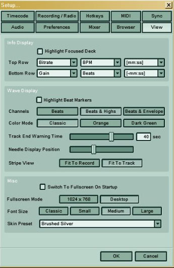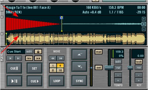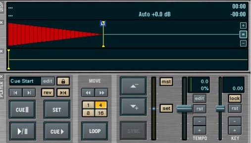![]() Per caricare un pezzo l'operazione è molto semplice: si cerca nel browser interno il pezzo desiderato e poi lo si trascina nella finestra del deck. Se l'operazione è stata fatta correttamente, apparirà la forma d'onda del brano in aggiunta a una serie di informazioni come il minutaggio e i bpm (se possibile). L'aspetto generale della visualizzazione del deck può essere modificato dal pannello "view" nel Setup. ![]() Inoltre possiamo modificare l'aspetto del deck anche in corso d'opera, per adattarlo meglio alle esigenze del momento. ![]() Come vedete la finestra è divisa in tre settori, dall'alto abbiamo: