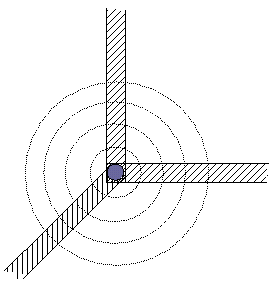 | -> Acustica -> La direttività Nei precedenti tutorial sui livelli sonori e sui decibel, nei quali abbiamo fornito varie formule per calcolare le intensità sonore, abbiamo finora dato sempre per scontato che i suoni presi in considerazione fossero omnidirezionali, ossia che si diffondessero nello stesso modo in ogni direzione. Questa non è però una condizione che si verifica in ogni situazione, in quanto spesso i suoni hanno una direzione ben precisa, sia a causa della fonte di emissione, sia a causa di eventuali ostacoli, sia a causa delle frequenze di cui i suoni sono composti. Definiamo allora alcune grandezze, che ci torneranno utili per lo studio dei suoni che hanno caratteristiche di direzionalità proprie e non siano quindi omnidirezionali. Se I è l'intensità del suono di una certa sorgente, definiamo IOMNI l'intensità che questa stessa sorgente produrrebbe nel caso in cui il suono fosse omnidirezionale. Tralasciamo la questione del se e come questa quantità IOMNI si possa calcolare: ciò può essere stabilito sperimentalmente caso per caso. Notiamo però che essa certamente ha un valore ben definito, e quindi ha senso parlarne. Definiamo ora fattore di direttività, e lo indichiamo col simbolo Q, il rapporto ![]() Q sarà quindi il rapporto tra l'intensità effettiva del suono e quella che il suono avrebbe se fosse omnidirezionale. Definiamo un'ultima quantità: diremo indice di direttività la quantità Si verifica sperimentalmente che questa quantità dipende dalla frequenza ed è tanto più grande quanto più alta è la frequenza del suono considerato, mentre tende a zero per le frequenze basse (ad esempio per una frequenza di 100 Hz si può considerare D=0, mentre per 10 kHz si avrà che D=12), il che significa che le basse frequenze possono essere sempre approssimate a suoni omnidirezionali, mentre le alte frequenze hanno indici di direttività più accentuati e quindi non trascurabili nei calcoli, come ora vedremo. Con questa nuova quantità possiamo infatti aggiornare la formula che abbiamo visto, nei tutorial che abbiamo citato sopra, per il livello di pressione sonora in campo libero a distanza r dalla sorgente. La formula, che ora considereremo come la formula in campo libero nel caso omnidirezionale, è questa: questa formula resta valida per le frequenze basse, ma ha bisogno di una correzione al crescere delle frequenze. Si avrà quindi (come si verifica sperimentalmente): Con questa formula si verifica, ad esempio, che con un livello di potenza alla sorgente LW = 100 dB, ad una distanza di 8 metri, il livello di pressione sarà LP = 100 dB - 20 log 8 - 11 + 0 = 71 dB per un suono a 100 Hz, mentre sarà LP = 100 dB - 20 log 8 - 11 + 12 = 83 dB per un suono a 10 kHz. Cosa vuol dire ciò che abbiamo visto? Vuol dire che un suono di bassa frequenza disperde più rapidamente la propria energia, e quindi perde maggiormente volume sulla distanza, mentre un suono acuto a parità di distanza ha un volume più alto. Questo è il motivo per cui, quando ad esempio in un concerto ci troviamo ad una distanza considerevole dal palco, sentiamo un suono con preponderanza di frequenze alte, quasi un ronzio se siamo davvero lontani, mentre se siamo molto - troppo - vicini, possiamo anche sentire dei bassi troppo profondi - proprio perchè i tecnici, ben conoscendo il problema, tendono a dare ai bassi una spinta molto forte. Ciò che abbiamo visto finora vale solo per il variare delle frequenze, e non tiene ancora in considerazione la possibilità che ci siano degli ostacoli; cioè abbiamo finora considerato solo il caso del campo libero. Andiamo allora a vedere cosa accade ponendo la sorgente vicino a degli ostacoli, ed occupiamoci dei casi più sempli: le pareti di una stanza. Primo caso: accanto alla parete Poniamo innanzi tutto di porre una sorgente accanto ad una parete, che per semplicità considereremo essere riflettente al 100%. Anche senza calcolare direttamente le grandezze I ed IOMNI, possiamo vedere che il loro rapporto Q in questo caso è 2 perché l’intensità reale I sarà raddoppiata rispetto a quella IOMNI del caso omnidirezionale, avendo diviso a metà lo spazio di possibile propagazione del suono. Quindi avremo D = 10 log Q = 10 log 2 = 3. Ciò significa che abbiamo guadagnato 3 dB rispetto al caso omnidirezionale. ![]() Secondo caso: nello spigolo Se poniamo la sorgente in uno spigolo, sempre ponendo che le pareti riflettano al 100%, si avrà Q = I/IOMNI = 4, da cui D = 10 log 4 = 6, quindi si guadagnano 6 dB rispetto al caso omnidirezionale. ![]() Terzo caso: nel vertice Se infine poniamo la sorgente in un vertice, ponendo ancora che le pareti riflettano al 100%, si avrà Q = I/IOMNI = 8, da cui D = 10 log 8 = 9, quindi si guadagnano 9 dB rispetto al caso omnidirezionale. ![]() Quello che abbiamo appena visto vale in particolare per le frequenze basse, poiché, essendo queste praticamente omnidirezionali, il loro rapporto I/IOMNI è molto alto; per le frequenze alte, che sono più direzionali, il rapporto I/IOMNI invece diminuisce al crescere della frequenza. << Indice |